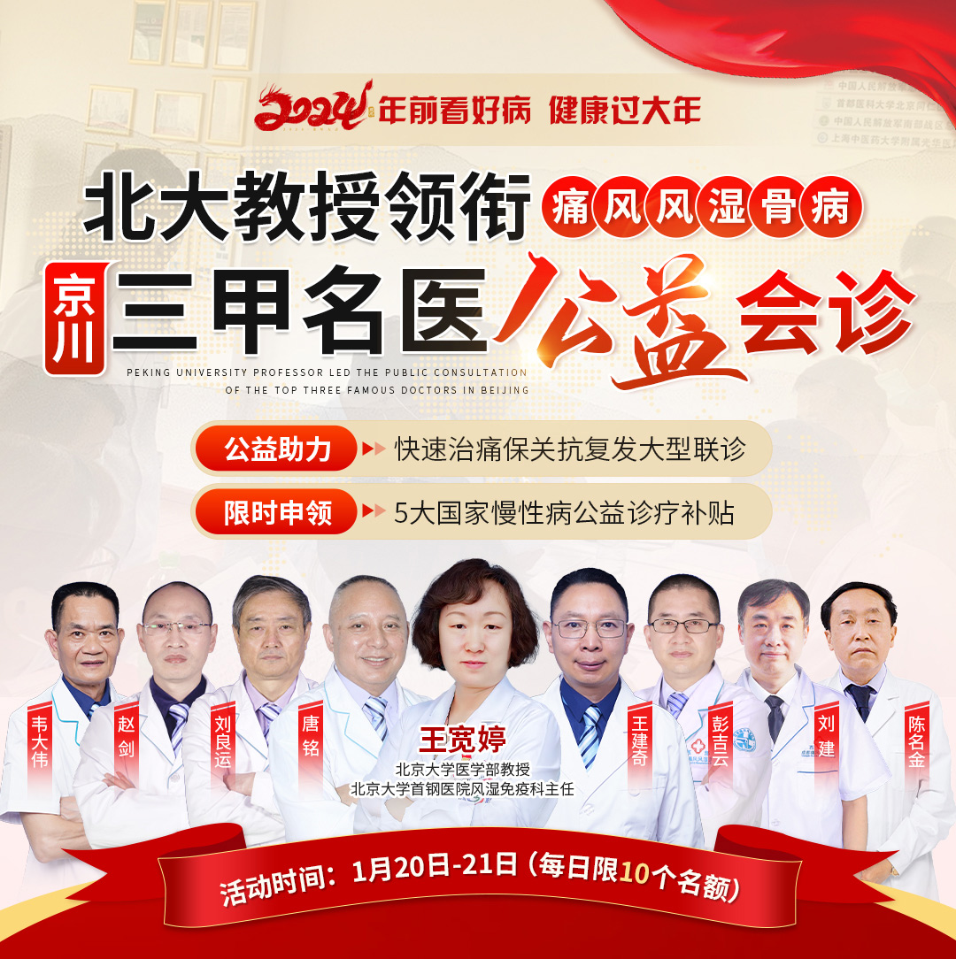 在距离春节不到1个月时间,对于常年饱受病痛折磨的,痛风、风湿骨病患者来说,如何快速解除病痛,以健康的身体迎接新年,是每一位患者的心声!成都西部痛风风湿医院开展“京川三甲名医公益会诊”,助你告别痛风/风湿骨病!